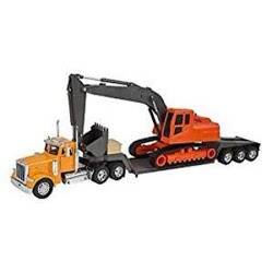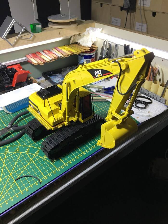 Een mooi voorbeeld van de combinatie modelbouw / verzamelen is de Caterpillar graafmachine geworden. Ooit voor de jongste telg op de vrijmarkt gekocht voor één €uro, vermoedde ik al dat 'ie veel weg had van een echt model. Het blijkt om een "speelgoed"-model van New Ray te gaan, grotendeels uitgevoerd in plastic, meestal geleverd in een setje met een vrachtwagen met dieplader.
