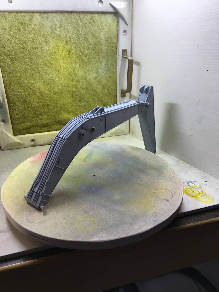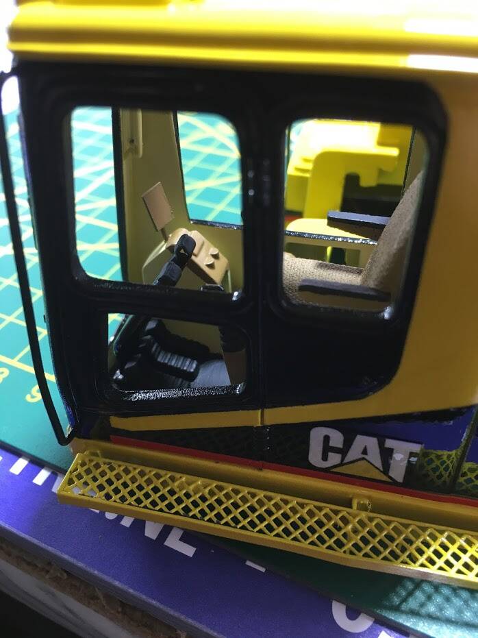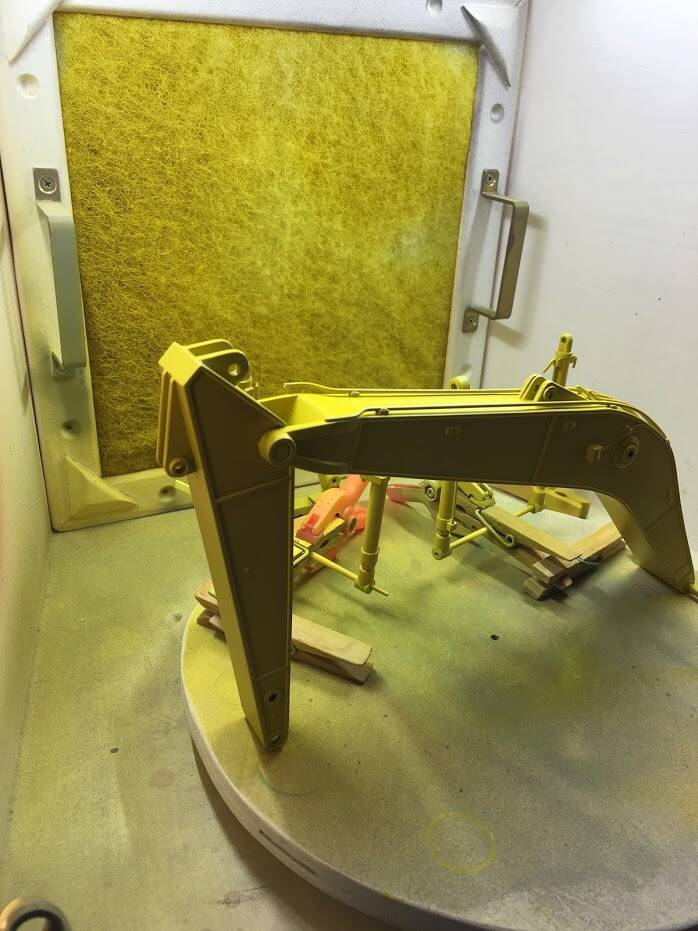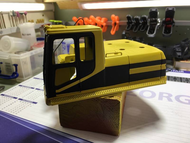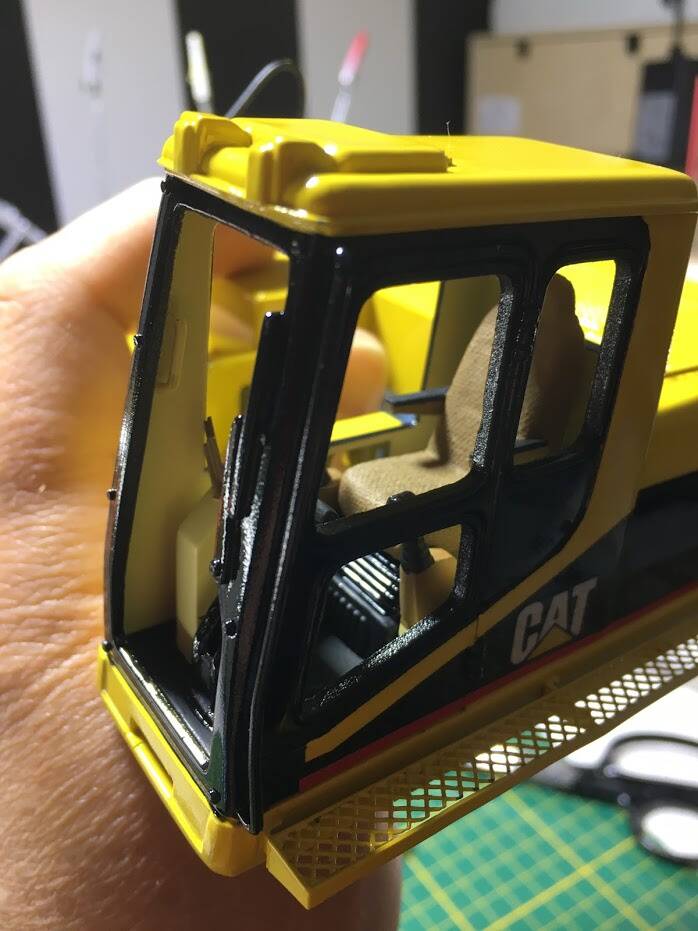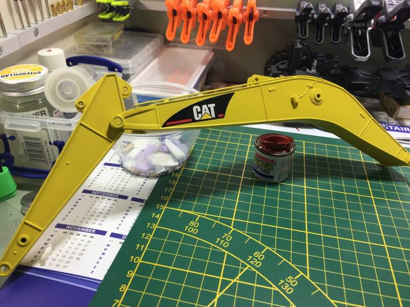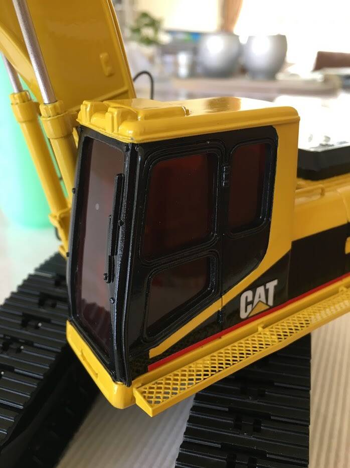Eerlijk toegegeven: ik werd geïnspireerd doordat ik op een website van een Amerikaan zag hoe hij "dit klusje" had gedaan, en besloot met junior in overleg te gaan en een ruiling op te zetten: hij een metalen schaalmodel van een Hitachi EX240 van mij, ik zijn New Ray (Caterpillar) graafmachine.
