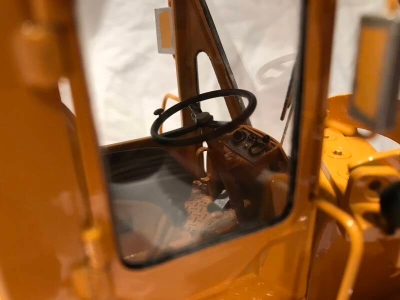Gedetailleerde zaken in de cabine in de vorm van bedieningshendels / -knoppen, een stoeltje en een realistischer-ogend dashboard zijn dan zaken die ik probeer na te maken. Voor de inspiratie en voor het juiste richtinggevoel daarin ga ik, al ruim vóórdat ik met zo'n project begin, op het internet op zoek naar foto's van een 1:1 model en zoek daar naar de juiste info omtrent bedieningshendels e.d.