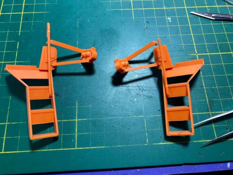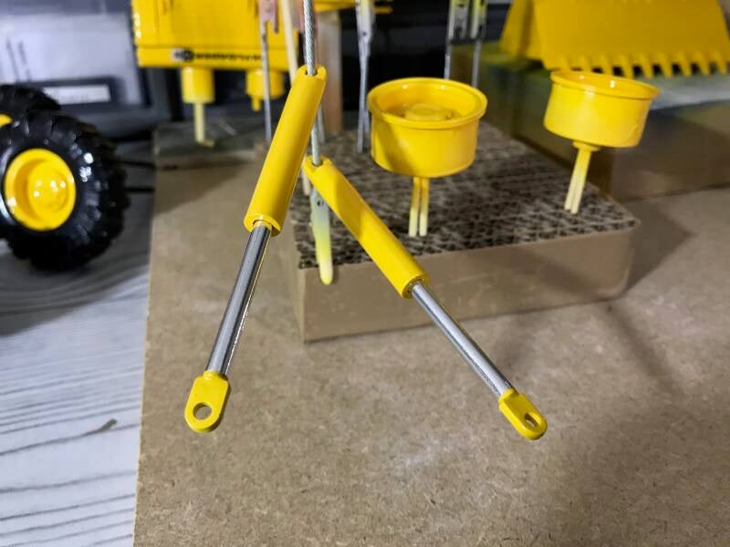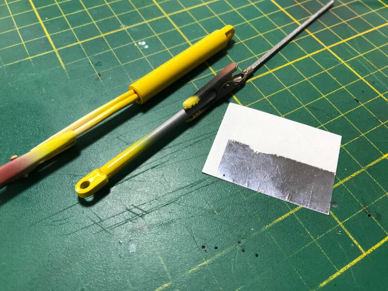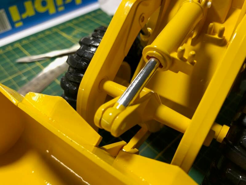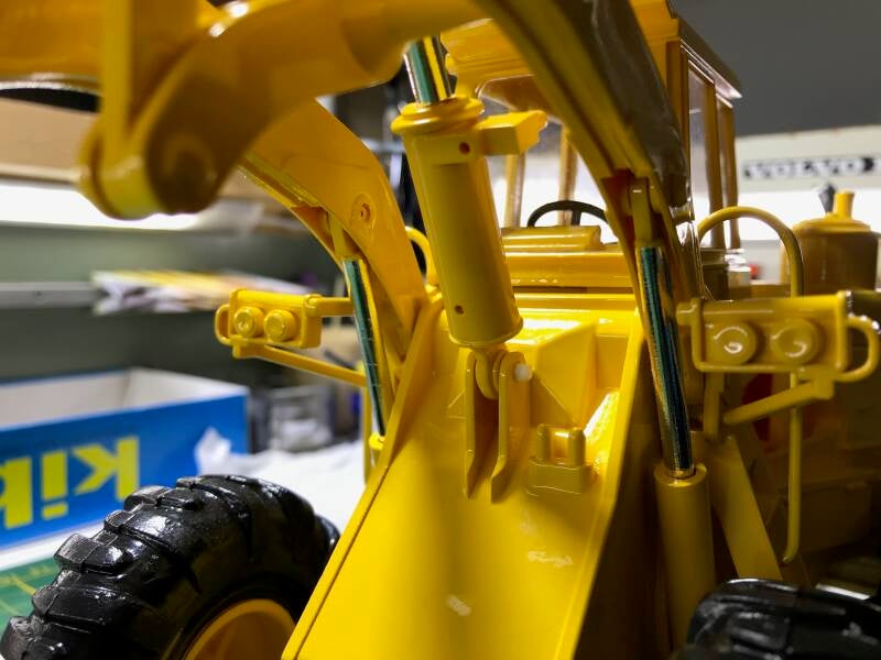 Omdat ik van mening ben dat juist de details van belang zijn om van een speelgoedmodel een schaalmodel te maken, steek ik daar veel tijd in. Zo worden de plunjerstangen van de cilinders voorzien van chroom-folie waarmee het plastic-effect verdwijnt, en het een "echte" uitstraling krijgt.