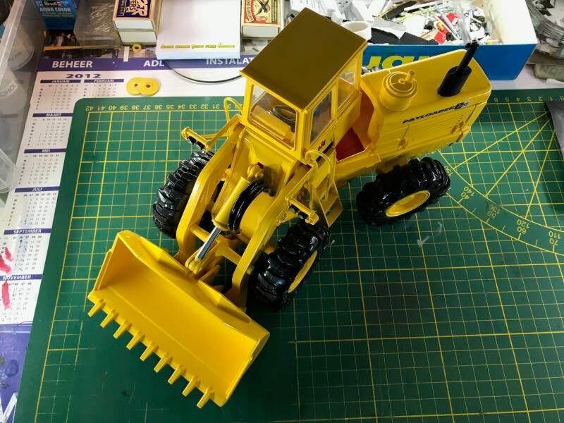 Onderstaand neemt ze haar plaats in in de vitrine, en zal daar straks worden vergezeld van twee Caterpillars 950 in dezelfde schaal.