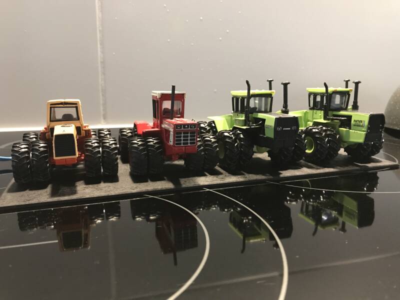 De "trekkertjes" die ik had bedacht voor op m'n dashboard zijn allen Amerikaanse types, zgn. Knik-trekkers, omdat ze sturen middels een scharnier tussen het voorste deel en het achterste deel van het frame. "Articulating", zoals het in de Engelse taal wordt genoemd.