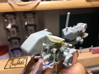 Het is overigens mijn eerste resin bouwdoos en het is allemaal érg fijntjes, het vergt geduld (wat op zich geen probleem is), de passing is niet overal even duidelijk en passend, en je kunt het alleen lijmen met secondenlijm (cyanoacrylaat), wat op zich niet zo'n heel prettig goedje is: het ruikt irritant en je hebt veel geduld nodig.